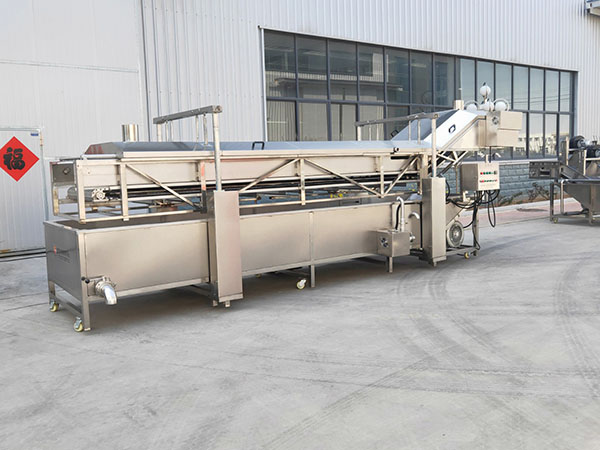 主要工作原理:物料由入料端進入漂燙機,經過機內高溫蒸煮,由鏈板緩慢輸送至出料端,進入下一道工序。